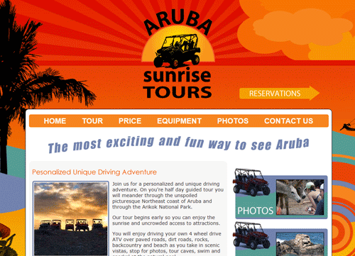 Website created for Aruba Sunrise Tours. Aruba Sunrise Tours is a personalized and unique driving adventure. On you're half day guided tour you will meander through the unspoiled picturesque Northeast coast of Aruba and through the Arikok National Park.